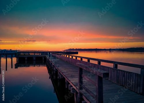 Obraz premium Bootssteg zur Abenddämmerung nach farbenprächtigen Sonnenuntergang in...
