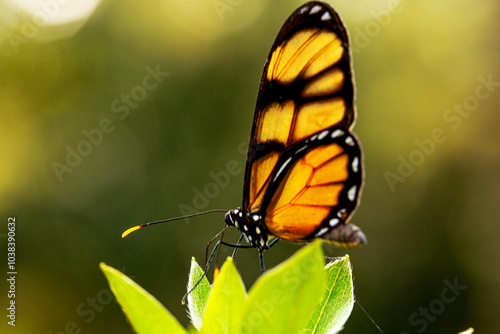© Luiz Leite, Fototapeta premium Borboleta Monarca pousada em flor branca.