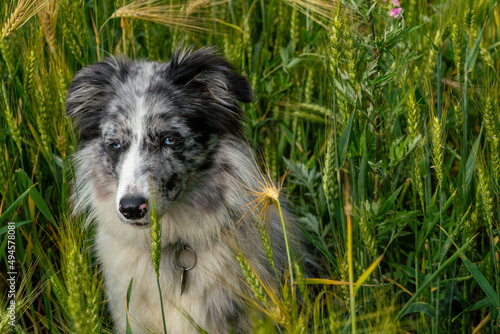 © fotomolka, Fototapeta premium border collie blue merle in the green field