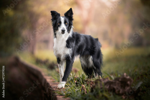 © Deise, Fototapeta premium Border collie dog black and white portrait