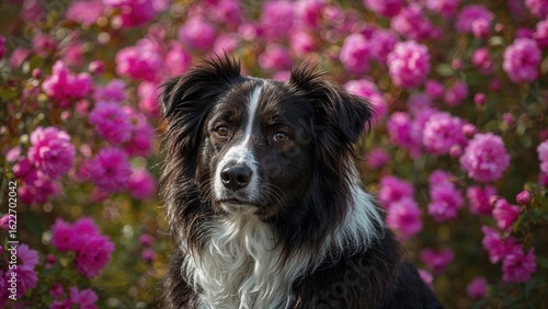 Fototapeta premium Border collie dog captured in natural floral surroundings