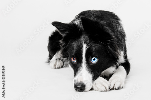 © OlgaOvcharenko, Fototapeta premium Border collie dog on white background