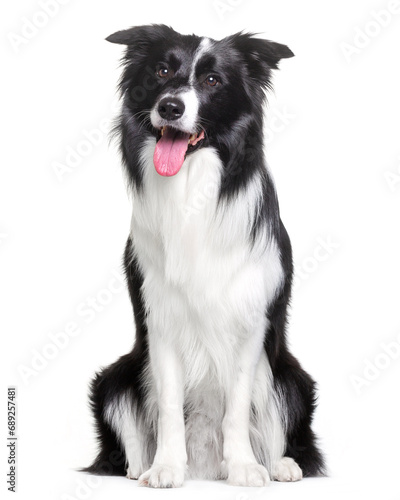 Fototapeta premium Border Collie, dog, portrait, sitting on a white background, isolate