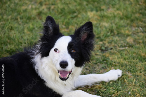 © Nallely, Fototapeta premium Border Collie dog resting in the garden