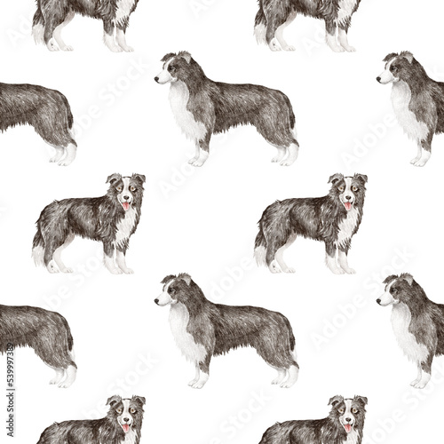 © Anastasiya, Obraz premium Border collie dog seamless pattern