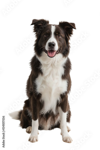 © Mochamad, Fototapeta premium Border Collie dog sitting upright, looking at camera, clean white background,