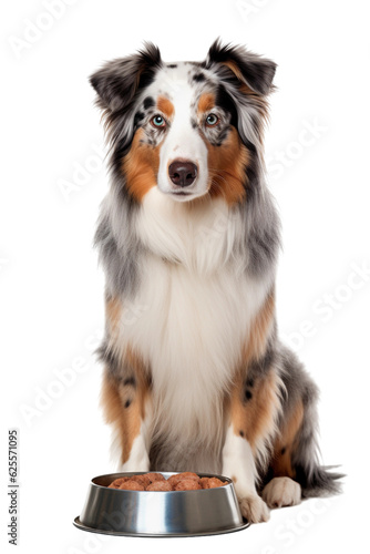 © Lucas, Fototapeta premium border collie dog with bowl isolated on white