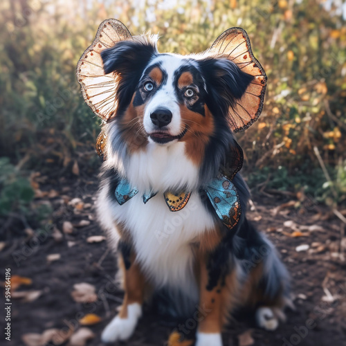 Fototapeta premium border collie dog with butterfly wings