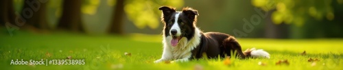 © tpadobestock, Fototapeta premium Border collie lies panting in shade after work, landscape, animal