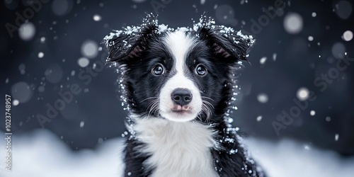 © Steph, Fototapeta premium border collie puppy in the winter snow
