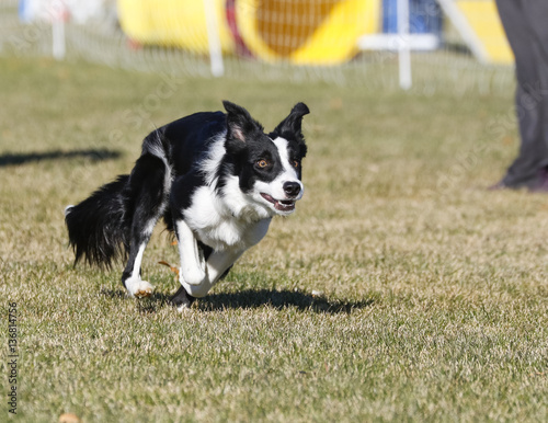 Fototapeta premium Border collie running through the park looking determined