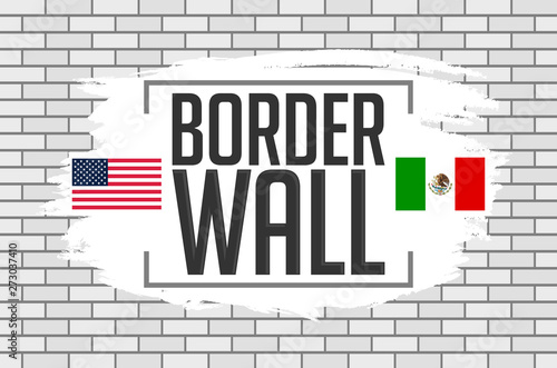 © Julio, Obraz premium Border Wall Concept vector illustration with the United States and Mexico flags