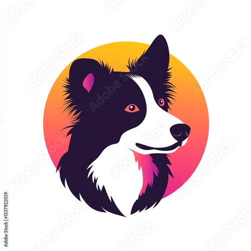 © Priyanut, Fototapeta premium BorderCollieSilhouetteAgainstVibrantSunsetBackground,CaptivatingCaninePortrait