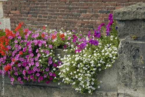 © Philippe Prudhomme, Fototapeta premium Bordure fleurie mauve, blanche et rouge