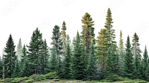 © Al-Mamun, Fototapeta premium Boreal taiga forest with evergreen conifers on transparent background