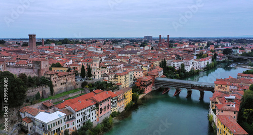 © Etna ·REC Attivo, Fototapeta premium Borgo di Bassano del Grappa e Ponte Vecchio visto dall'alto