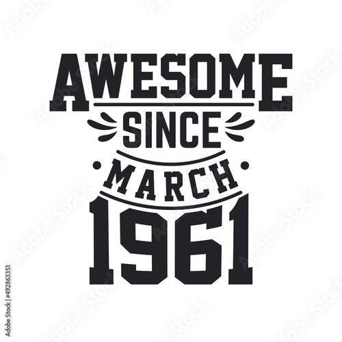 Obraz premium Born in March 1961 Retro Vintage Birthday, Awesome Since March 1961