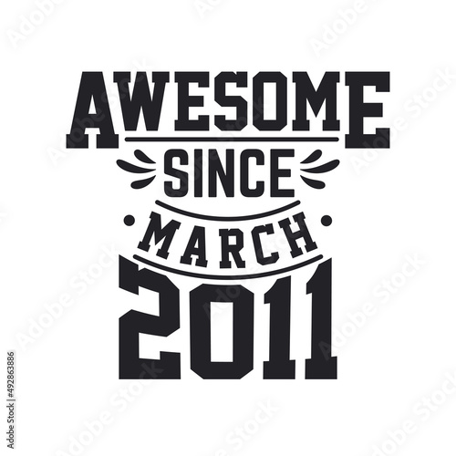Obraz premium Born in March 2011 Retro Vintage Birthday, Awesome Since March 2011