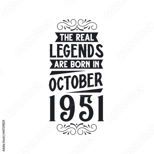 Fototapeta premium Born in October 1951 Retro Vintage Birthday, real legend are born in October 1951