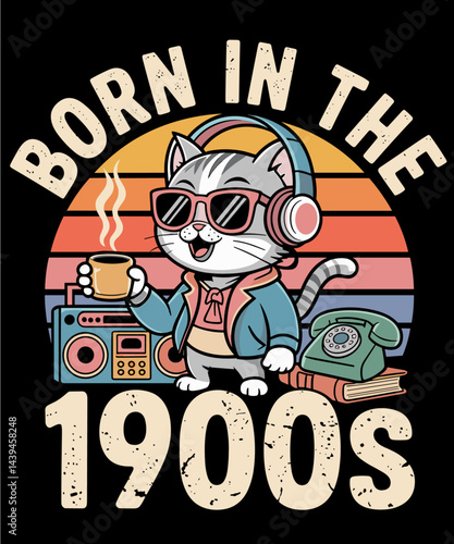 Obraz premium BORN IN THE 1900s Retro Cat 90s Vibes Vintage