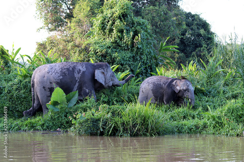 © Christian, Fototapeta premium Borneo pygmy elephants (Elephas maximus borneensis) - Borneo Malaysia Asia