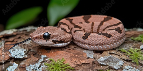 © Narongsag, Fototapeta premium Borneo Ringed Snake Closeup Tropidolaemus Subannulatus Wildlife Photography