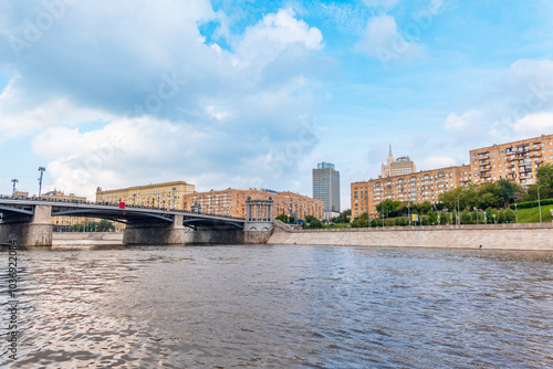 © Dmitrii Potashkin, Obraz premium Borodinsky Bridge and Ministry of Foreign Affairs of Russia main building in Moscow. Russia