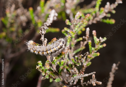© Michael Tieck, Fototapeta premium borstige Raupe in trockener Besenheide (Mai/Juni)