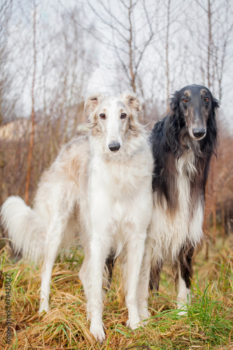 © Farinoza, Fototapeta premium Borzoi dog portrait on dry grass background