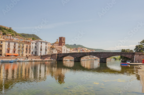 Fototapeta premium Bosa, Stadt, Altstadt, Fluss, Temo, Temobrücke, Kathedrale, Fischer,...