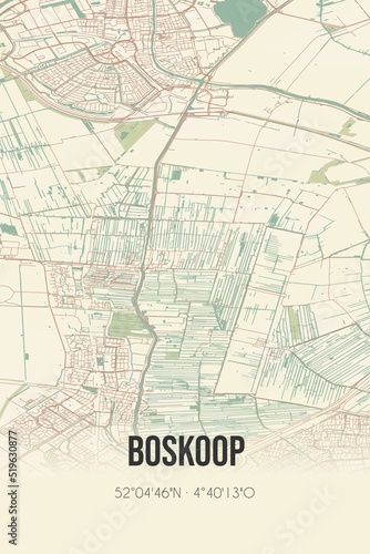 Fototapeta premium Boskoop, Zuid-Holland vintage street map. Retro Dutch city plan.