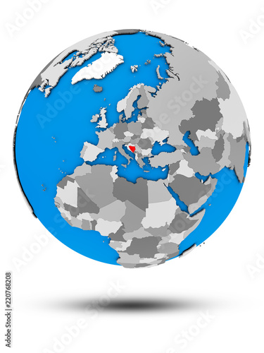 Naklejka premium Bosnia and Herzegovina on political globe isolated