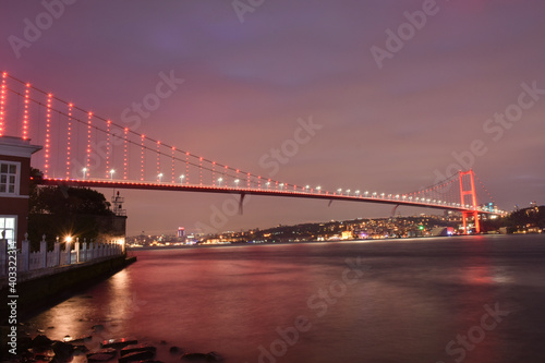 © Ersin, Fototapeta premium Bosphorus bridge (15 Temmuz Sehitler Koprusu) at night scene, Istanbul, Turkey