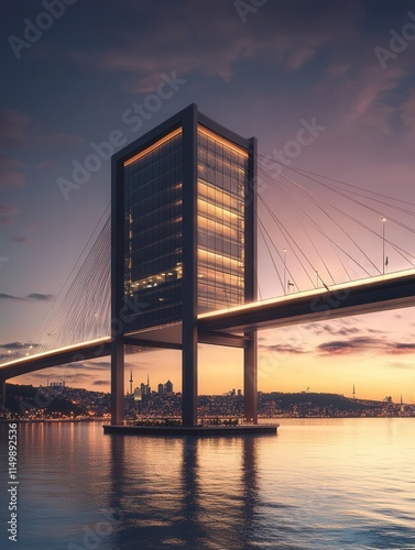 © Thirawat, Obraz premium Bosphorus Strait in the evening, with the Istanbul Bridge beautifully lit up.