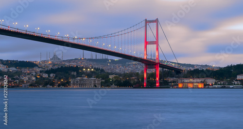 © Khaled El-Adawi, Naklejka premium Bosporus Bridge at night, Ortakoy district, Istanbul Turkey