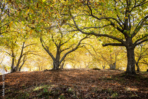 © Ana, Fototapeta premium Bosque de castaños en otoño durante la recolecta de castañas en Málaga, Andalucía.