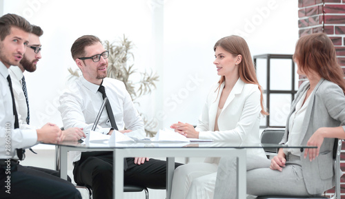 © ASDF, Obraz premium boss and business team sitting at the Desk.
