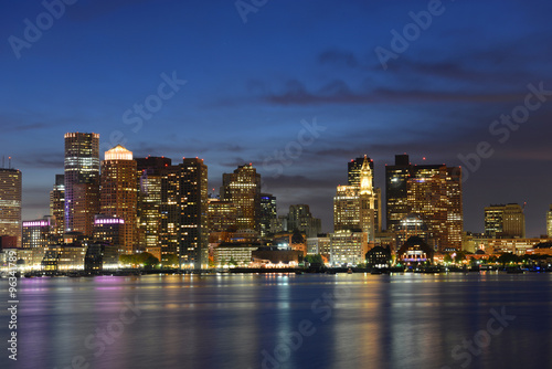 © Wangkun Jia, Fototapeta premium Boston City Skyscrapers, Custom House and Boston Waterfront at night from East Boston, Boston, Massachusetts, USA