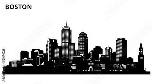 © Harry, Naklejka premium Boston Cityscape Silhouette Vector Skyline Illustration