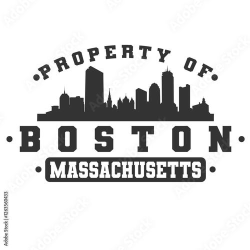 © josepperianes, Fototapeta premium Boston, MA, USA City Varsity Skyline. A Logotype Sports College and University Style. Illustration Design Vector Emblem.
