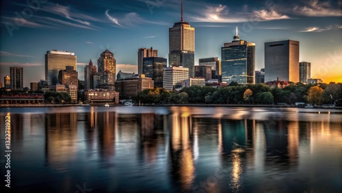 Fototapeta premium Boston Skyline Charles River Panorama: Massachusetts Cityscape Photography