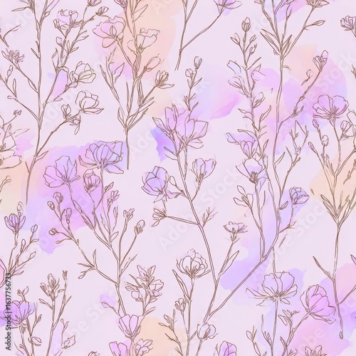 Obraz premium Botanical contour drawing of wild plants creating a seamless background texture