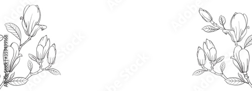 © Kotkoa, Obraz premium Botanical elements design template. Panoramic simple design with frame flowers. Herbal vector frame