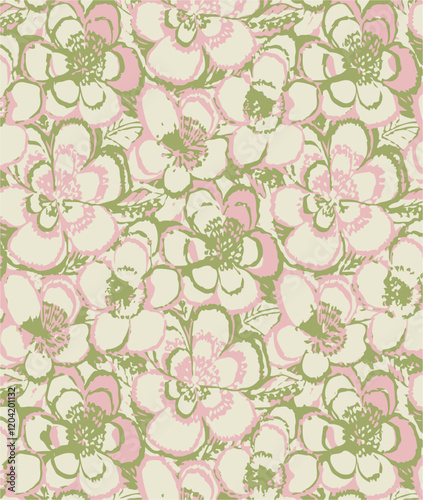 © Sketch, Obraz premium botanical floral vector seamless pattern with roses herbs and leaves big set background with flowers