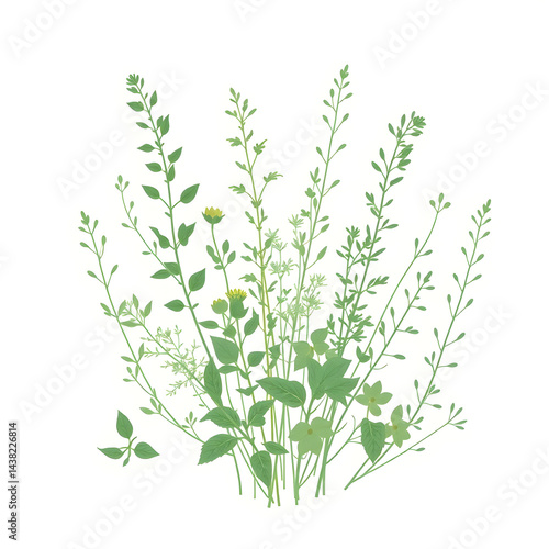 © 두호 최, Fototapeta premium Botanical Illustration - herbs in emerald and beige for interior posters