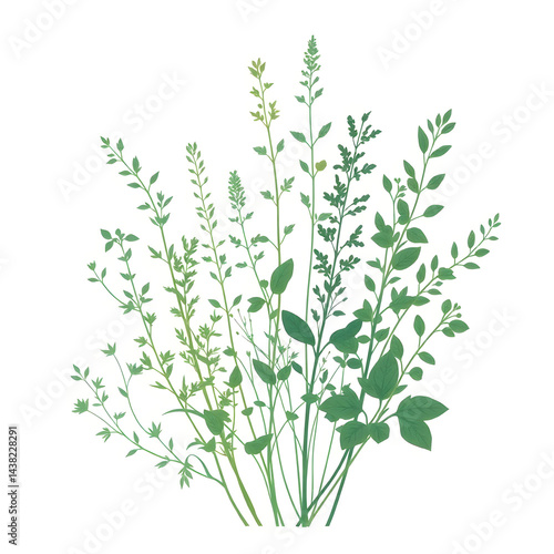 © 두호 최, Fototapeta premium Botanical Illustration - herbs in emerald and beige for interior posters