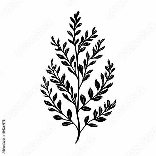 Naklejka premium Botanical Leaf and Branch Illustration. Minimalist Black and White Vector Art...