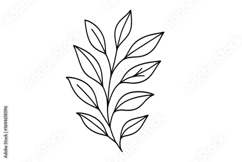 © AIStock, Fototapeta premium Botanical leaf line illustration for natural designs. Elegant plant branch with foliage. Minimalist floral doodle sketch. Vector outline art isolated on transparent background.