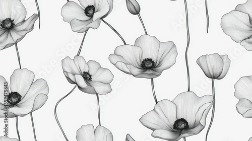 Fototapeta premium Botanical Line Art: Create a seamless botanical pattern using fine black line art to depict gray flowers, focusing on simplicity and elegance