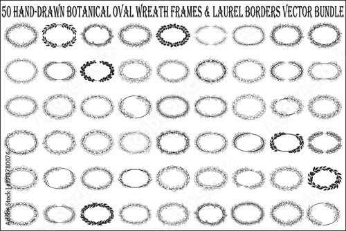 © Asura, Fototapeta premium Botanical Oval Wreath Frame Bundle